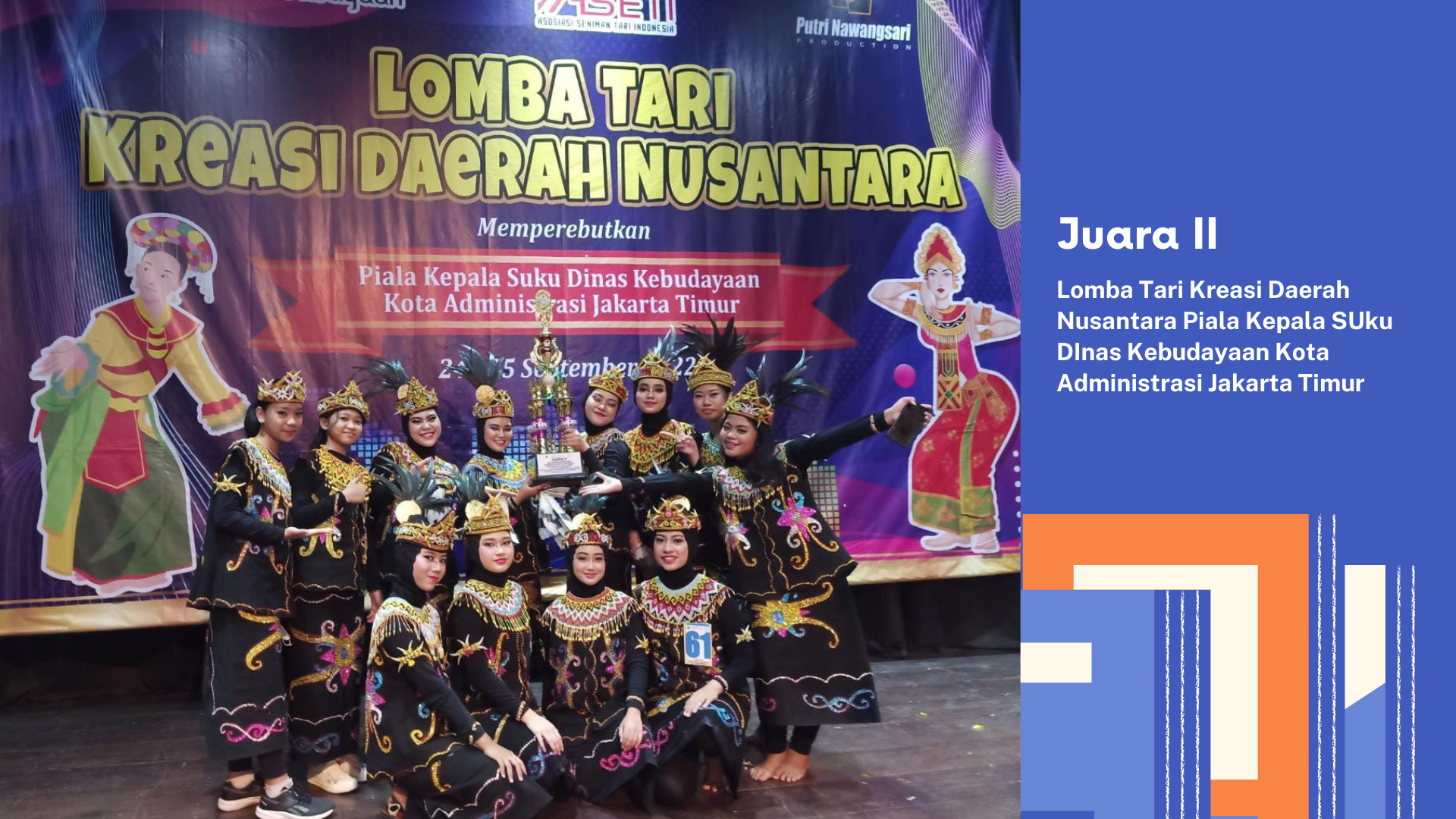 Tim Tari Tradisional SMA Negeri 53 Jakarta mengikuti kegiatan lomba yang diadakan Suku Dinas Pendidikan Kota Administrasi Jakarta Timur pada tanggal 24-25 September 2022. Dalam ajang tersebut Tim Tatra SMA Negeri 53 Jakarta mendapatkan piala Juara 2 Tingkat Suku Dinas Jakarta Timur.
